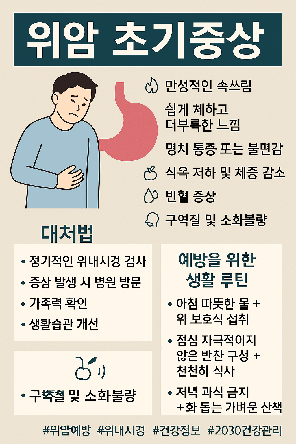 #위암초기증상 #위암예방 #위암검진 #위암조기진단 #위암증상 #속쓰림 #명치통증 #건강정보 #소화기암 #정기검진 #2030건강관리