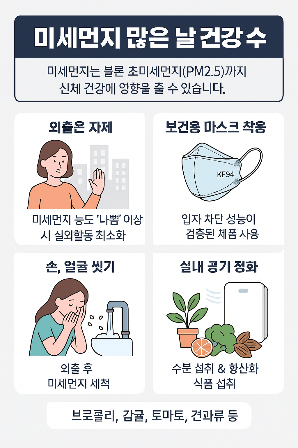 #미세먼지건강수칙 #KF94마스크 #미세먼지대처법 #호흡기질환예방 #공기청정기활용법 #항산화식품 #미세먼지식단 #미세먼지피부관리 #2030건강관리 #환경건강수칙