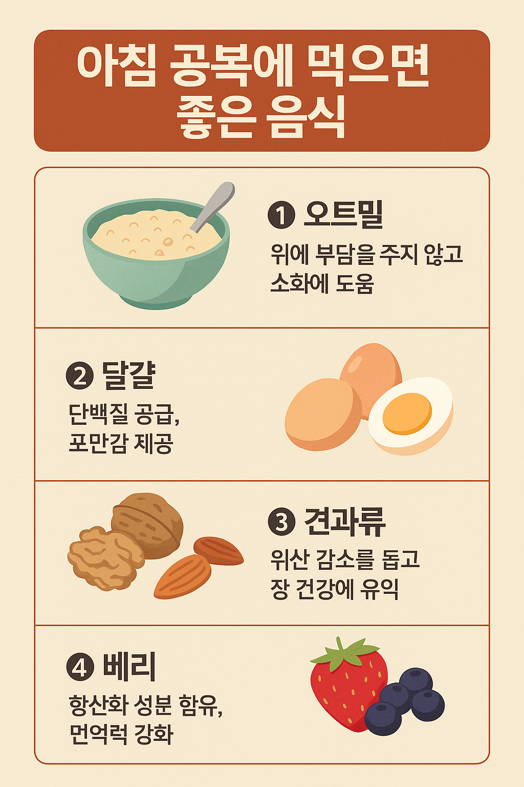아침을 시작하는 순간, 우리는 하루의 컨디션을 결정짓는 중요한 선택을 하게 됩니다. 바로 공복 상태에서 어떤 음식을 먹느냐입니다. 자고 일어난 직후 우리 몸은 에너지원과 수분이 부족하고, 위는 비교적 민감한 상태에 있기 때문에 첫 음식 선택이 매우 중요합니다.